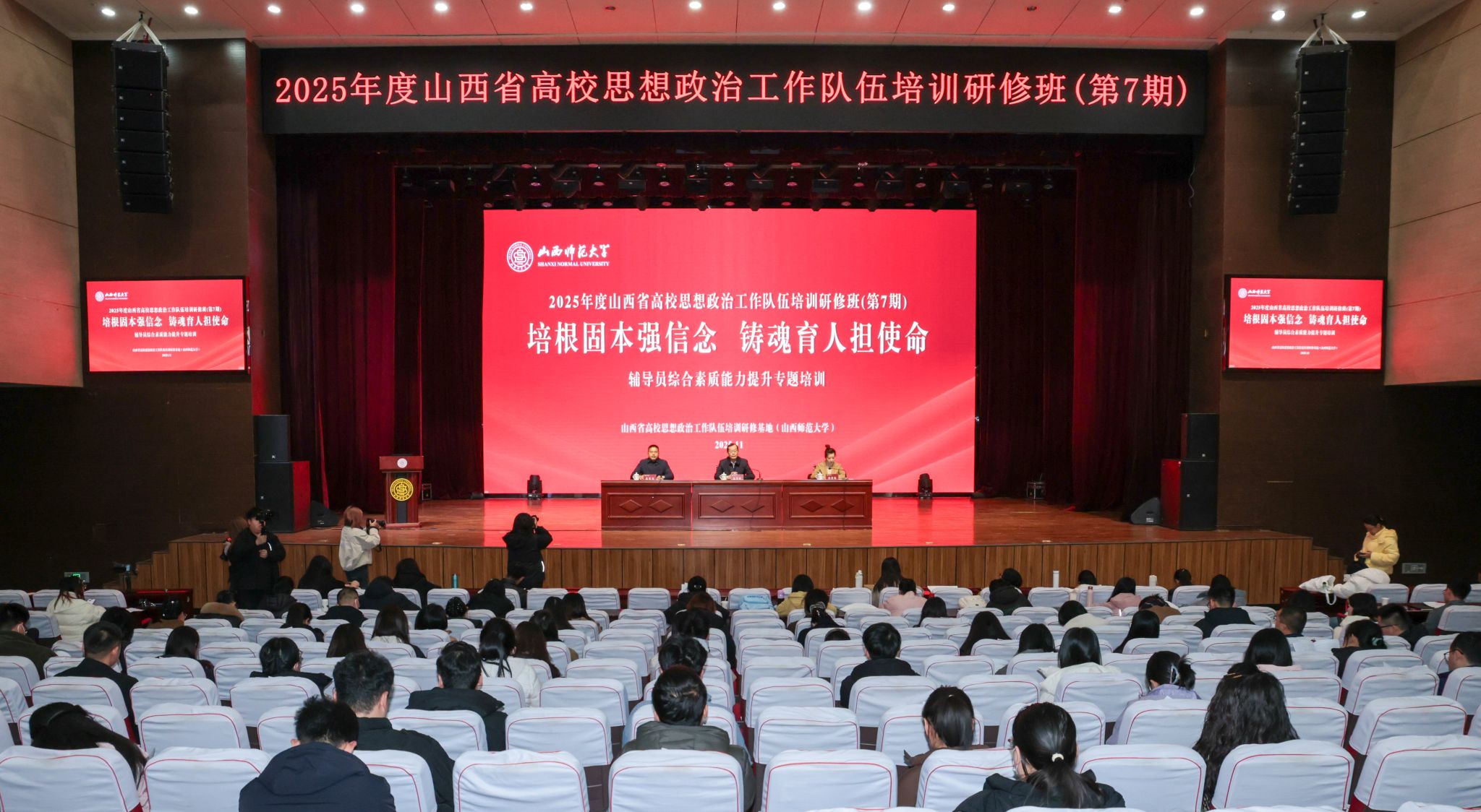 11月26日至28日,2025年第7期山西省高校思政工作队伍培训研修班在我校举办。校党委常委、副校长范哲锋出席开班仪式。来自全省71所高校的150名辅导员参加培训。