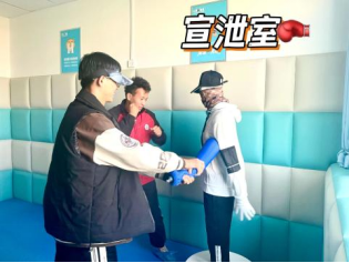 宣泄室是为了释放来访者不能消化的情绪,如愤怒等。室内设计了两个人体沙袋和隔音墙,来访者可以通过打、摔、喊等尽情释放自己的压力情绪,实现“释放-反思-成长”的闭环。